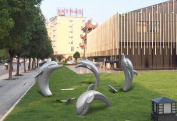 不銹鋼海豚形象雕塑,給草坪增添獨特姿態(tài)