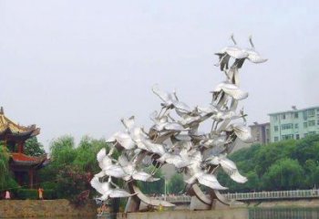 品位非凡的不銹鋼戶外雕塑鏡面魚群景觀