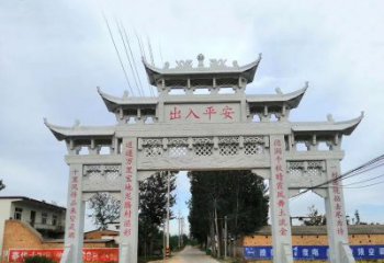 歷史名人故里村前擺放大石浮雕樓牌坊