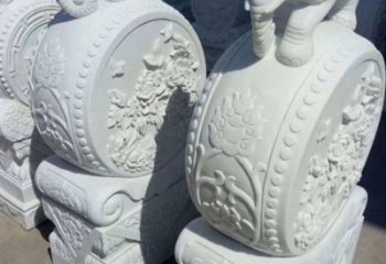 精美雕刻大理石小象抱鼓擺件