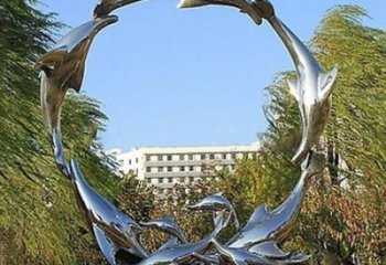 不銹鋼拋光鏡面海豚噴泉擺件