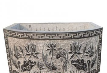 中式風格漢白玉鯉魚浮雕水缸