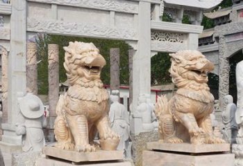 大型黃蠟石麒麟雕塑是一種用于點綴廣場景觀的戶外雕塑。它由黃蠟石和石雕組成,整體呈現(xiàn)出一只開展翅膀、身軀優(yōu)美、猶如真實麒麟的雕塑,為繁忙的都市景觀注入一份清新的動人之美。