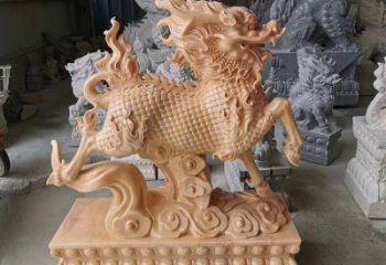 大型黃蠟石麒麟雕塑,點綴廣場景觀